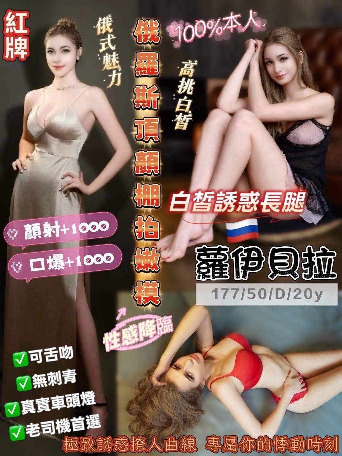 主打➡️俄羅斯天然美乳超高滿意度,骨感纖瘦、親人撒嬌個性,白皙粉嫩,多汁小蜜穴,女王級身材,全身勻稱零贅肉,每檔預約爆滿,優質服務加上高級顏值、讓你無法抵抗絕對享受,我發誓你不來會後悔啦啦啦!