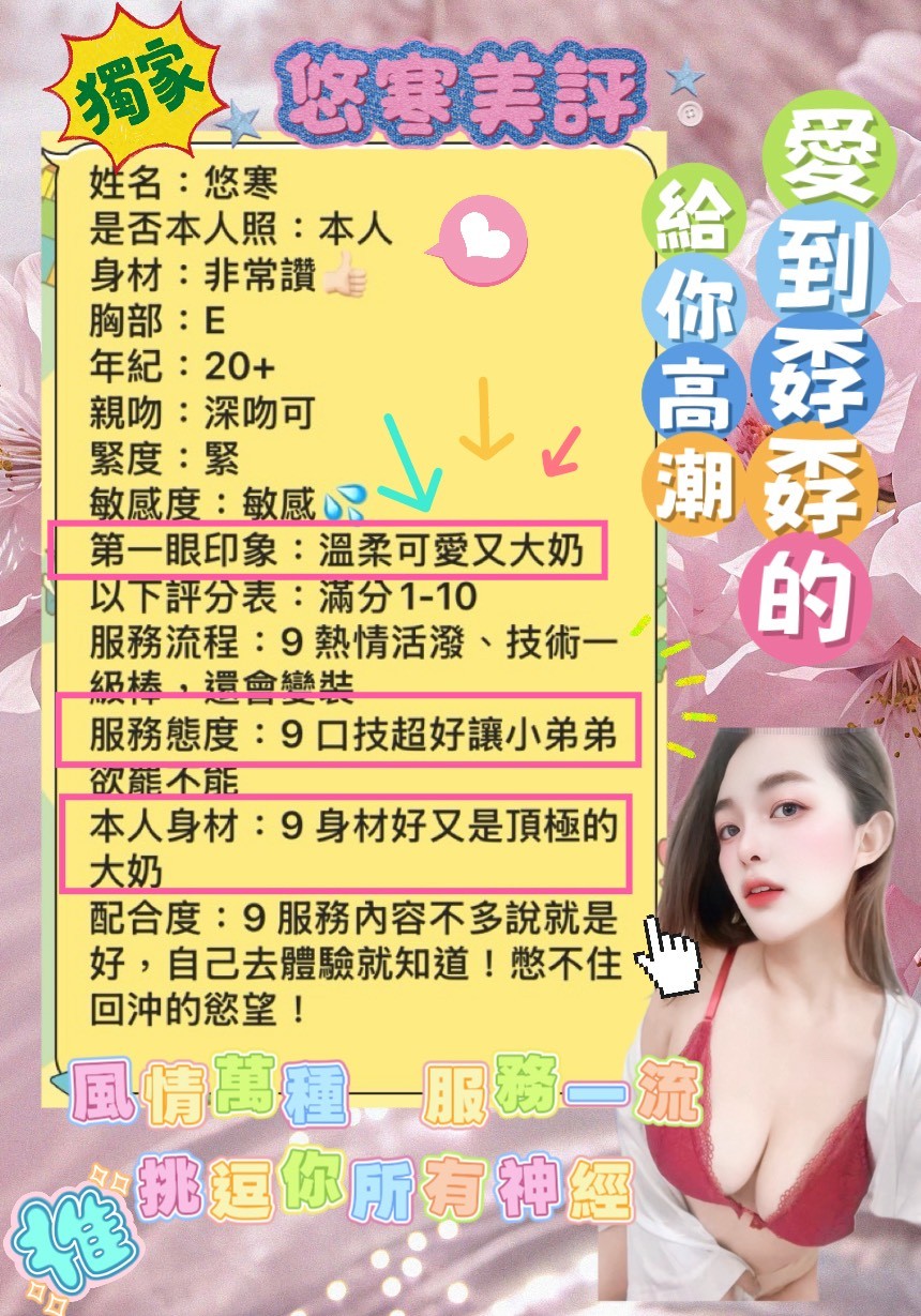 甜蜜共浴/無套吹/69/小親親/品鮑/舔蛋/奶炮/胸推/輕功/按摩/可配合絲襪or變裝(需自備)/可配合角色扮演(需自備)